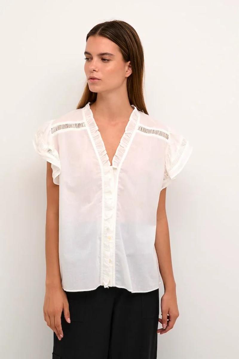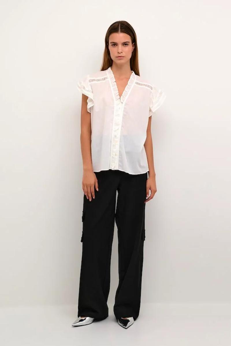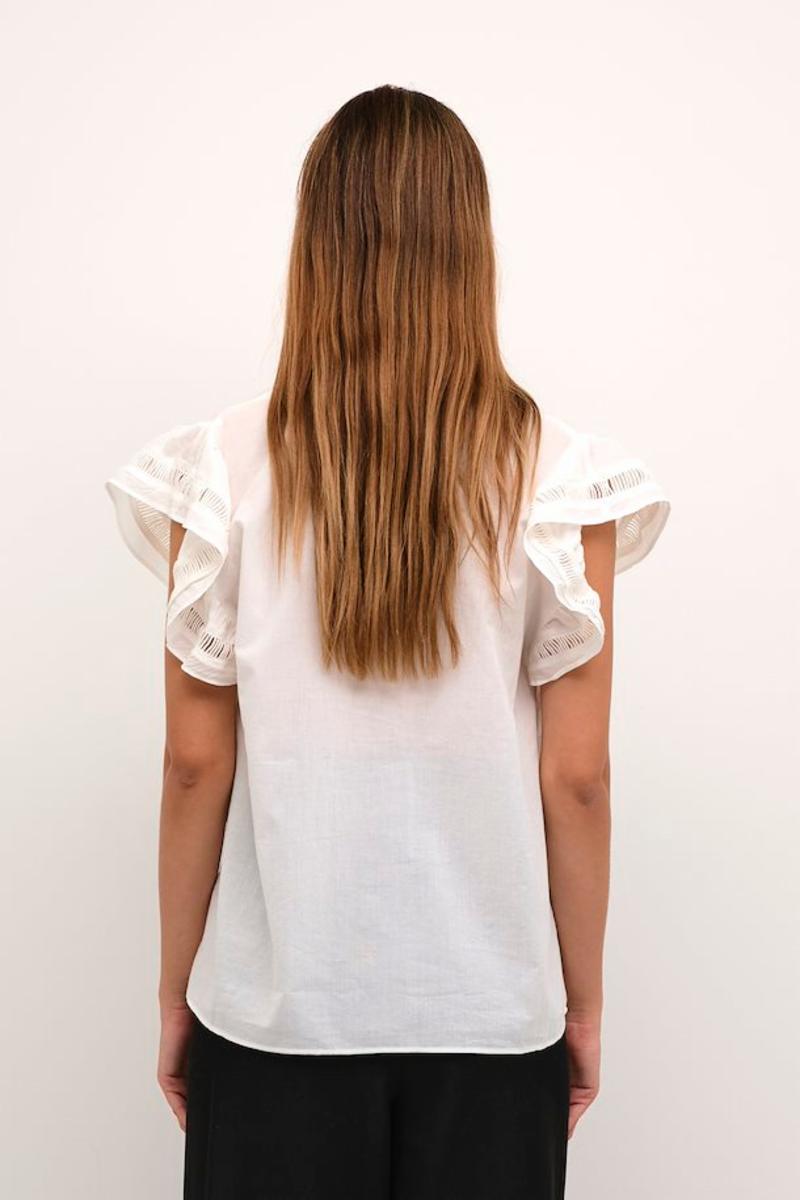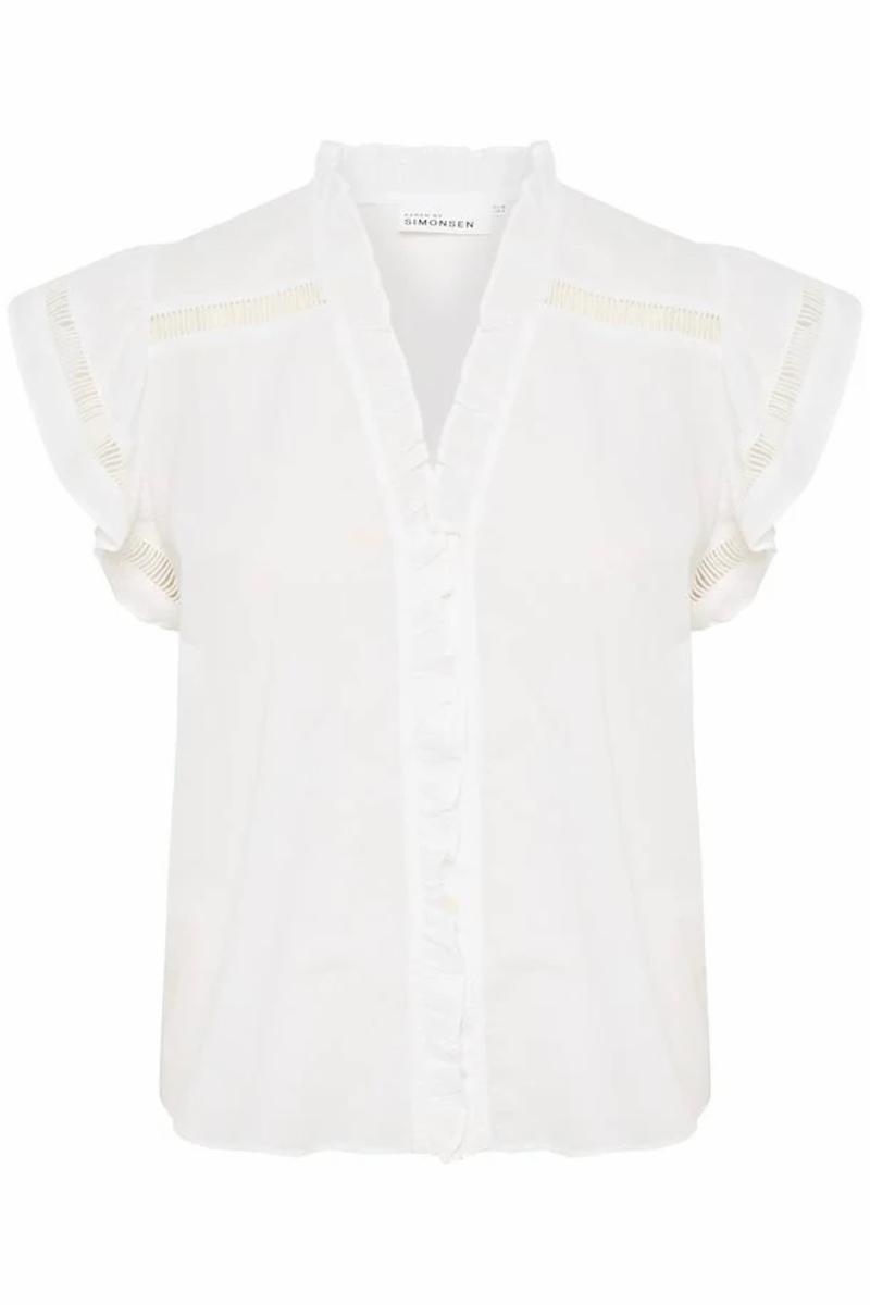 Denne blusen er en fin tillegg til enhver garderobe. Den er laget av vevd materiale og har en rett passform med en lengde som rekker til hoften. Ekstrakort erm gir et sofistikert uttrykk. Perfekt å kombinere med en stilig bukse eller skjørt for en komplett antrekk. Modellen er 171 cm og har på seg størrelse 36/S.