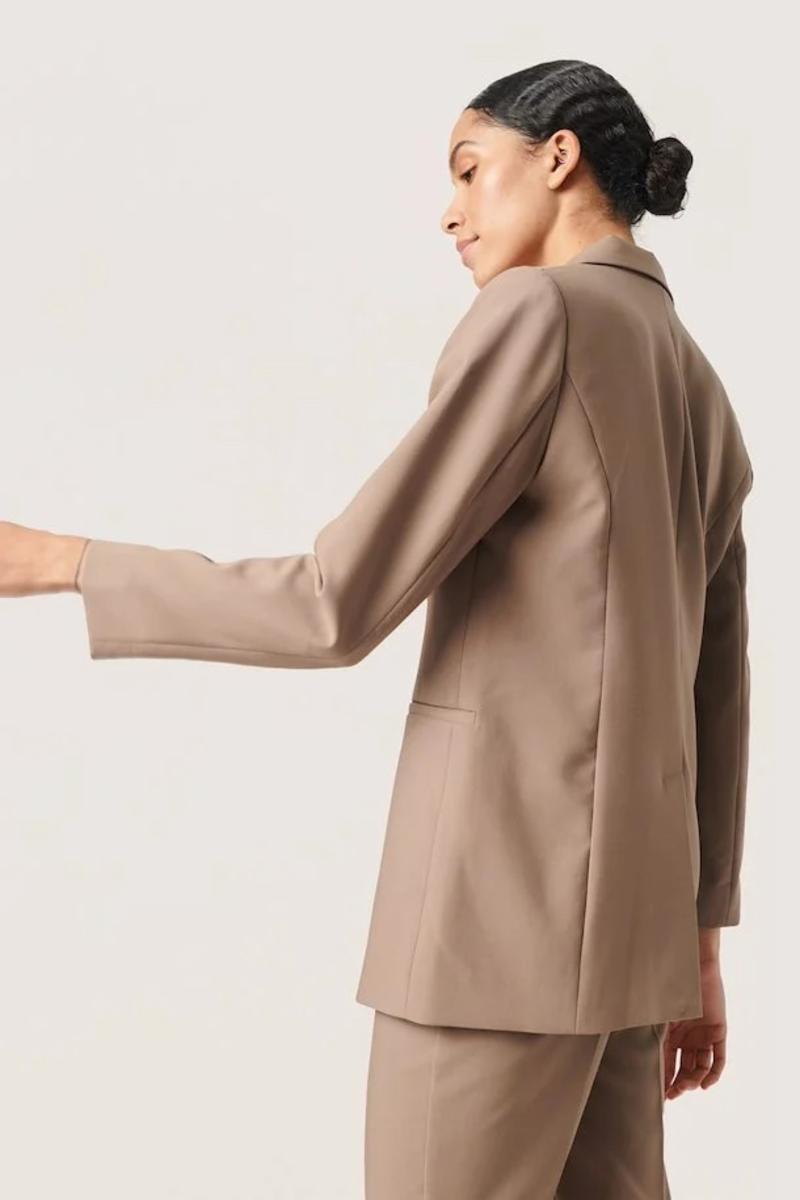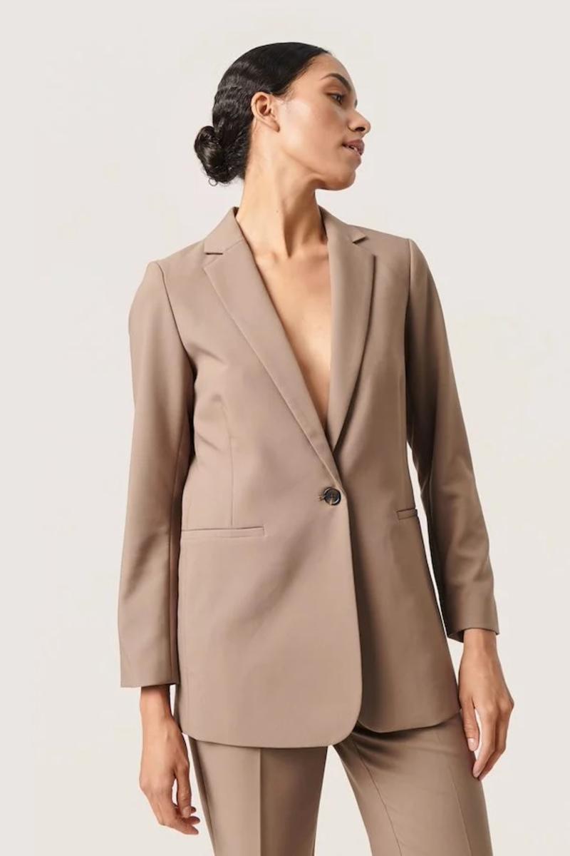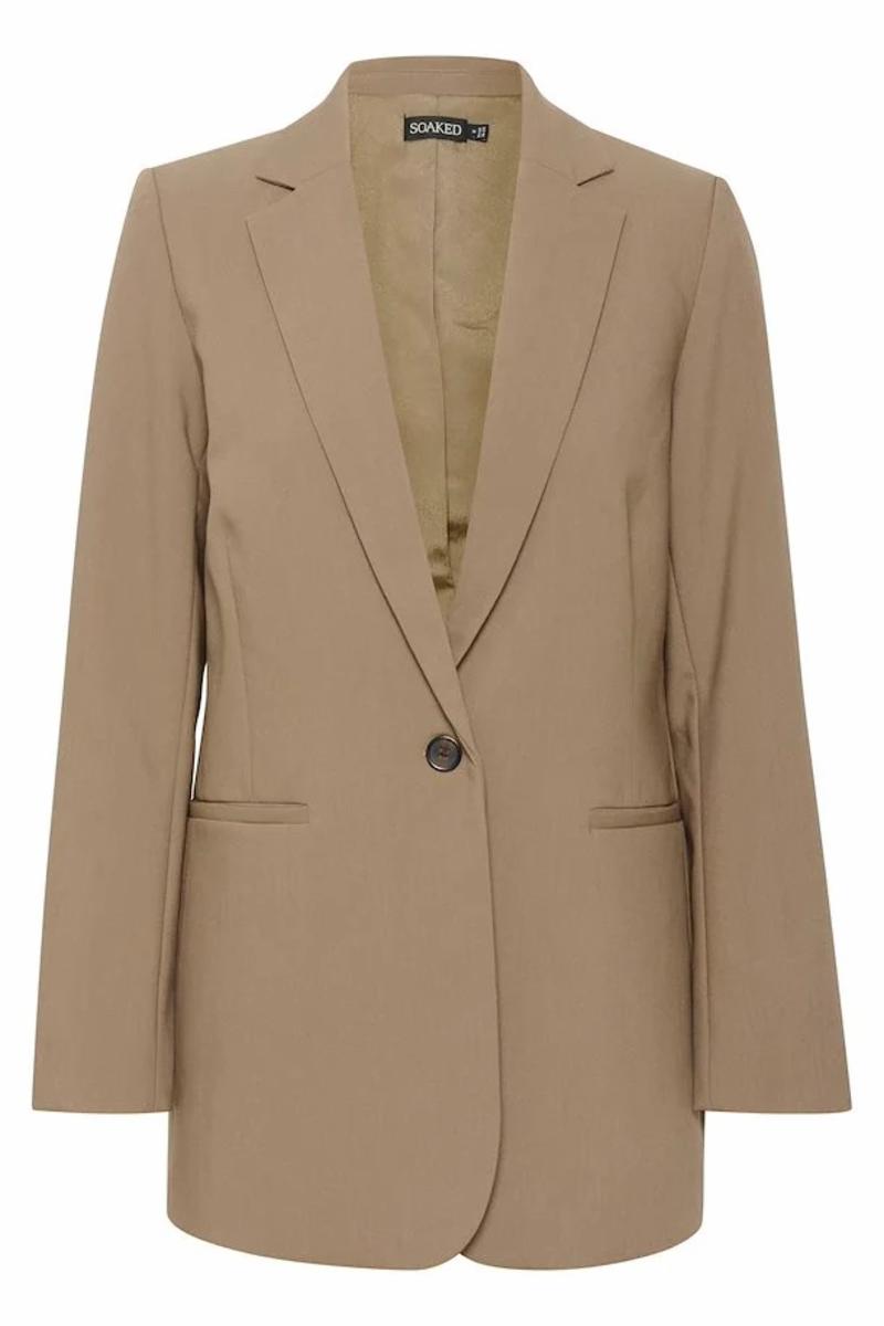 Blazerjakke med knappelukking, slag og lommer foran. Blazeren har en normal passform. Modellen bruker størrelse M.