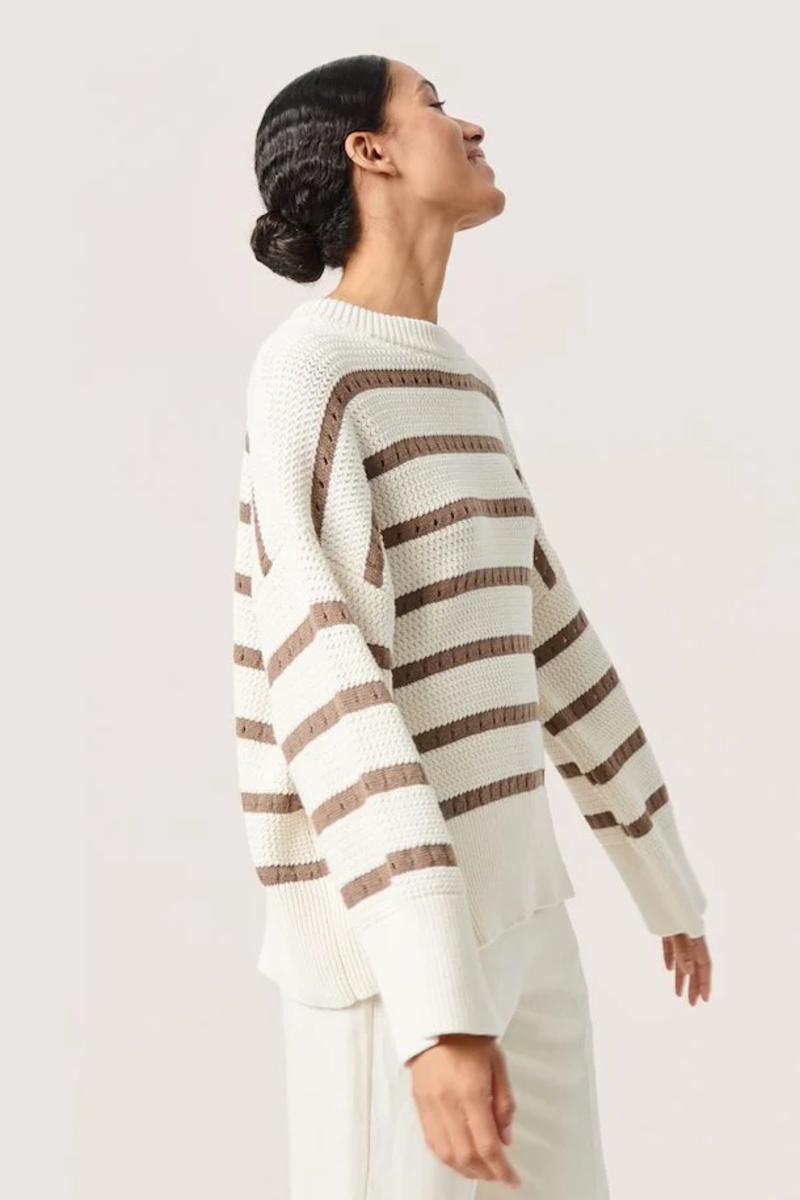 Ravalina Stripe Pullover White and Walnut Stripe