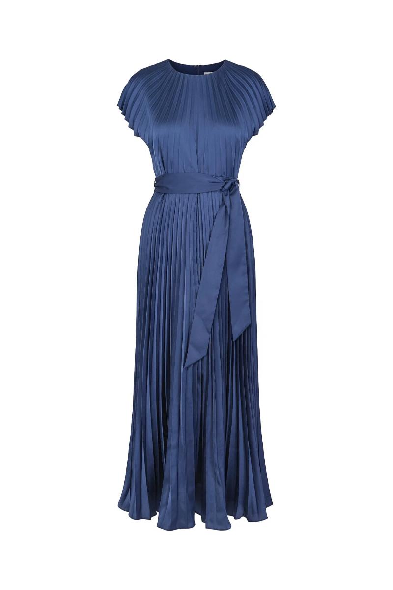 Nydelige Metz dress i plissè. Kjolen har et tungt fall og en flatterende passform med knytebelte i livet for en markert midje. Utrolig vakker og tidløs farge. Metz Dress er en elegant kjole som er perfekt til sesongens festligheter.