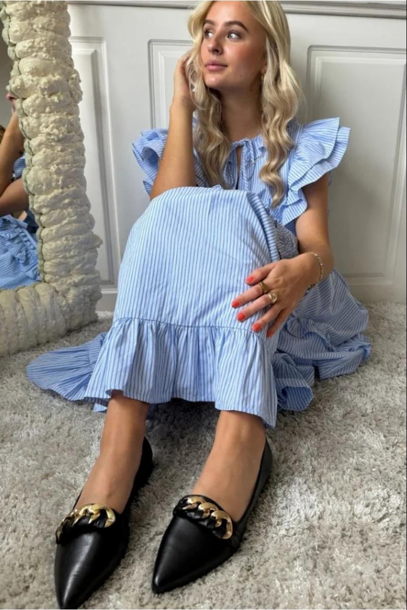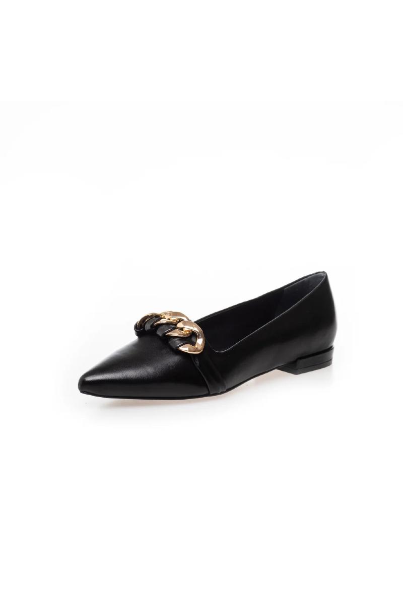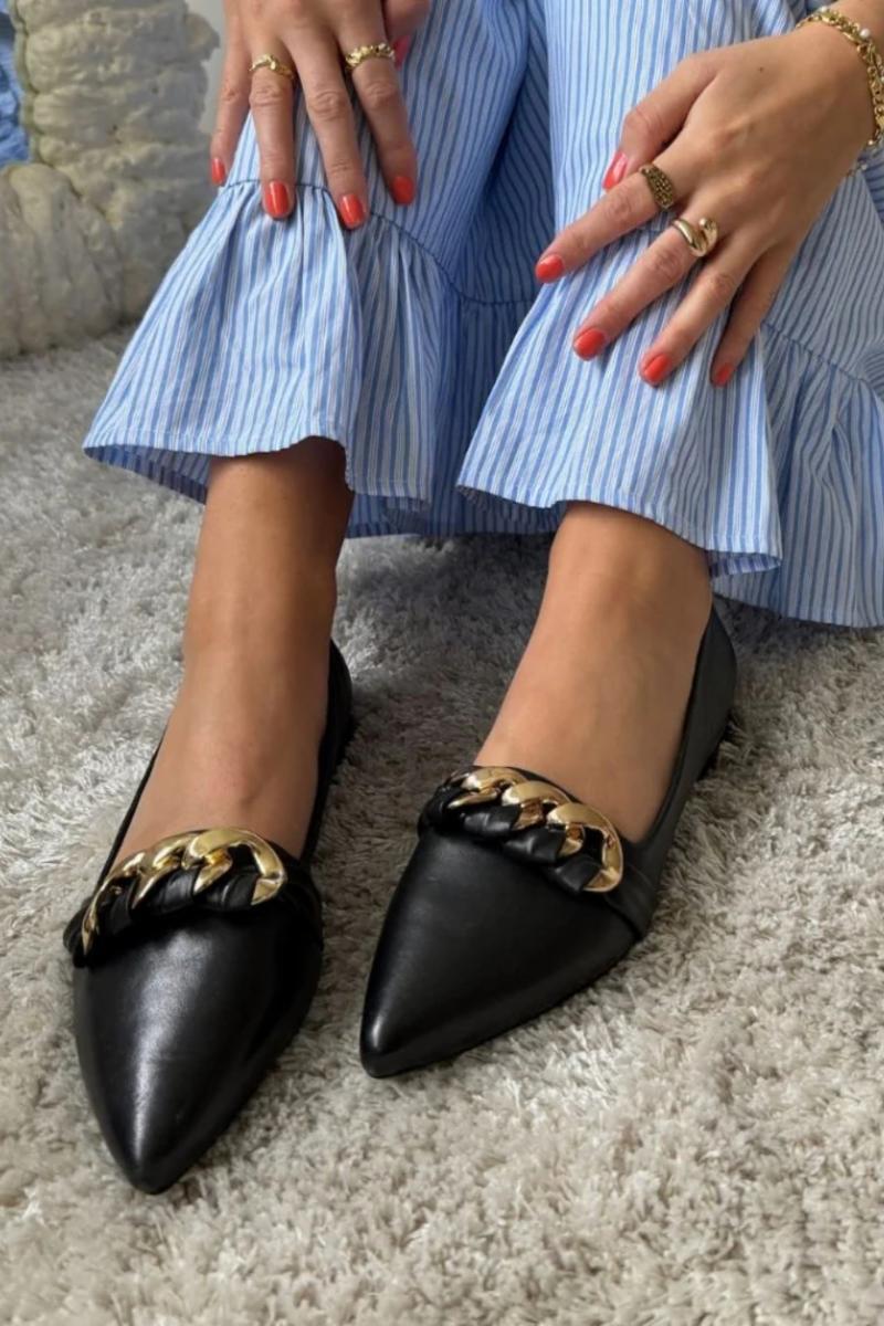 Ballerinasko i mykt kalveskinn med vakker gullkjede som detalj.