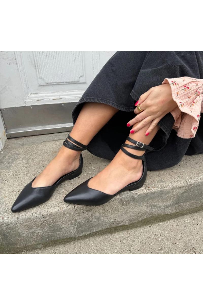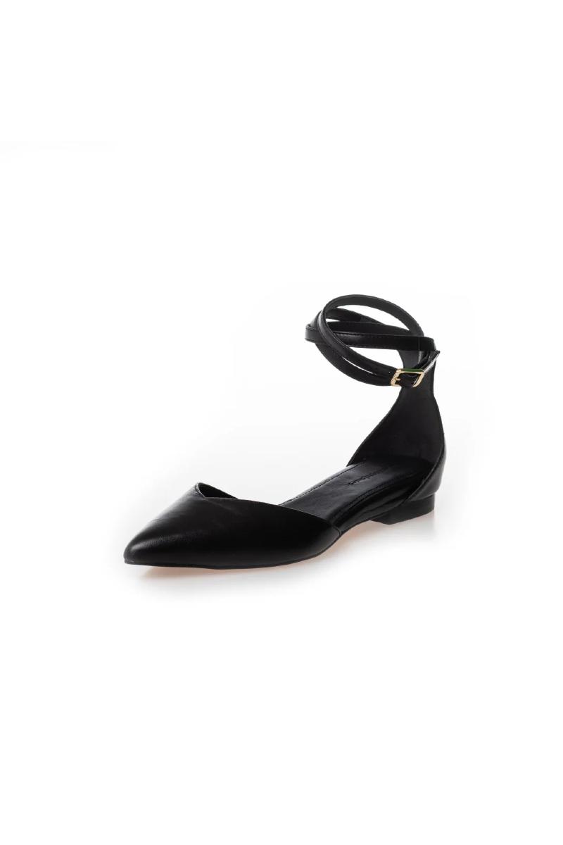 Beautiful classic ballet flats crafted from soft leather with lightweight and soft rubber soles. They feature a narrow ankle strap with a gold-toned buckle and a slightly pointed toe. They are suitable for a regular or narrow foot.