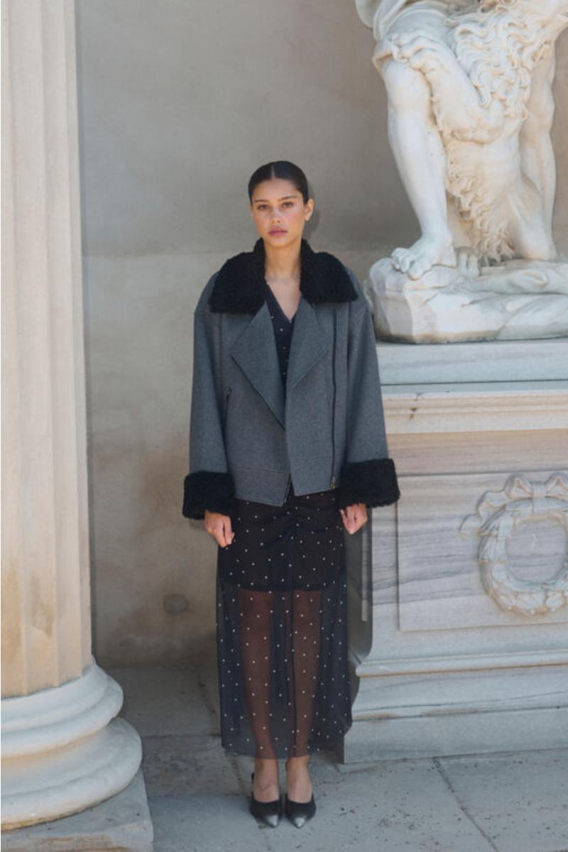 The model is 175 cm and wearing a size 36/S.