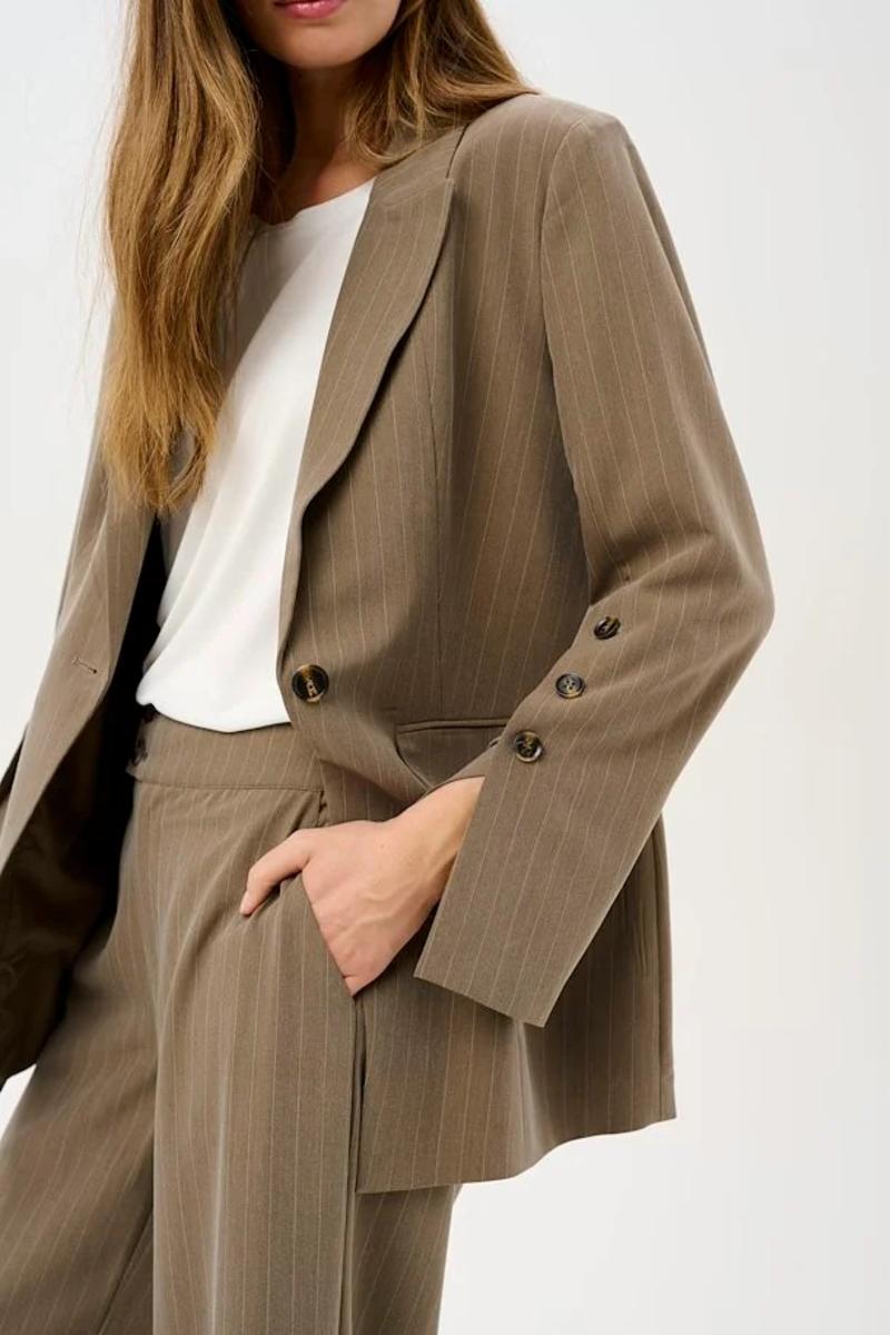 Denne blazeren har et klassisk snitt med lange ermer og er laget i et vevd stoff. Produktets materialblanding med polyester, viskose og elastan sikrer god holdbarhet og bevegelighet. Et tidløst og praktisk plagg for mange anledninger.
