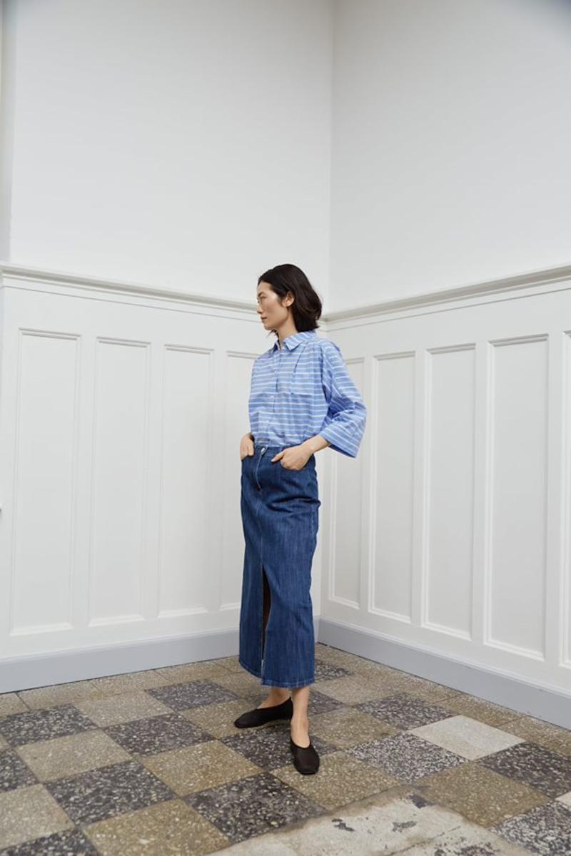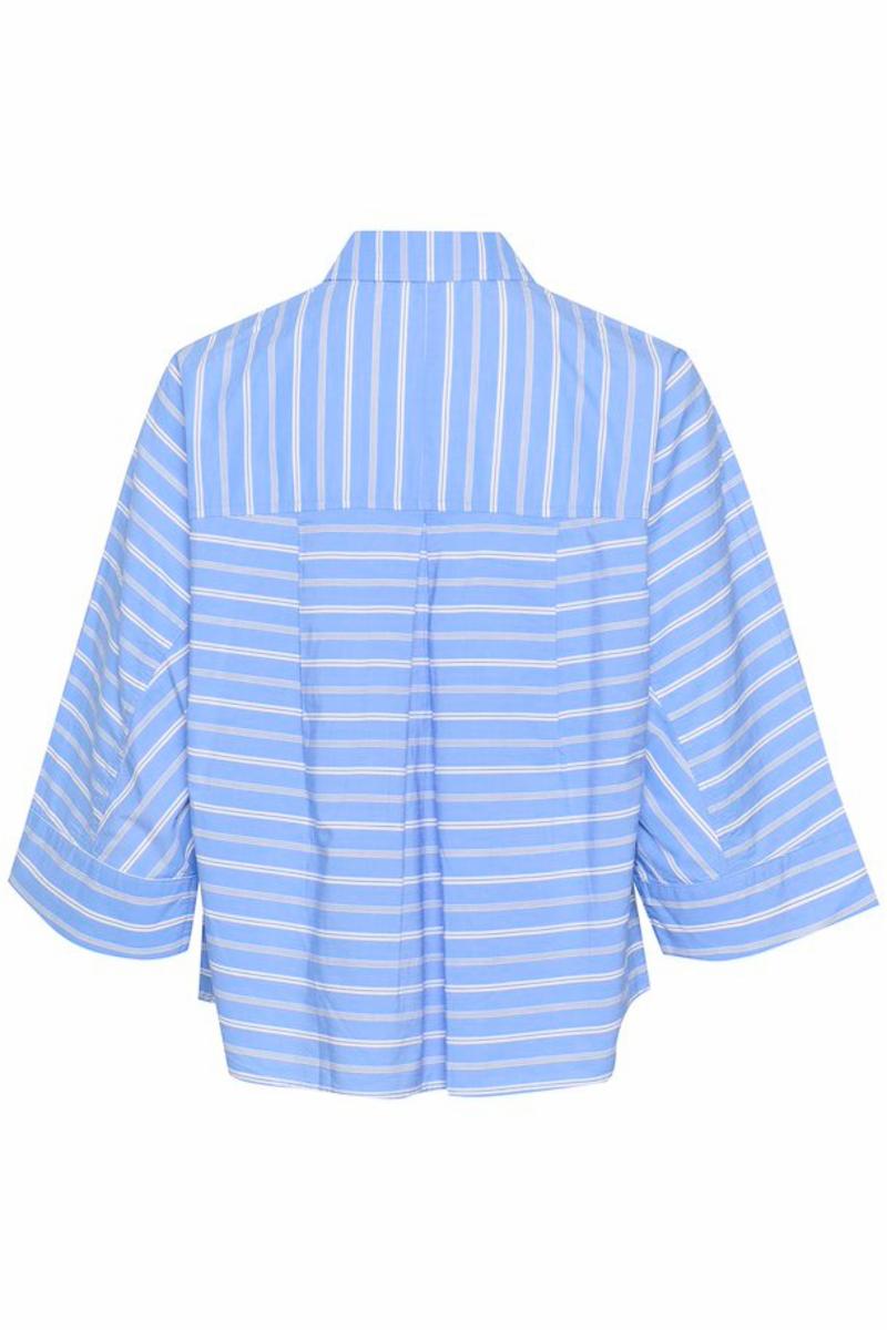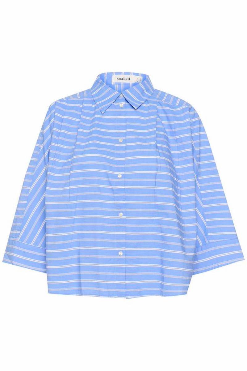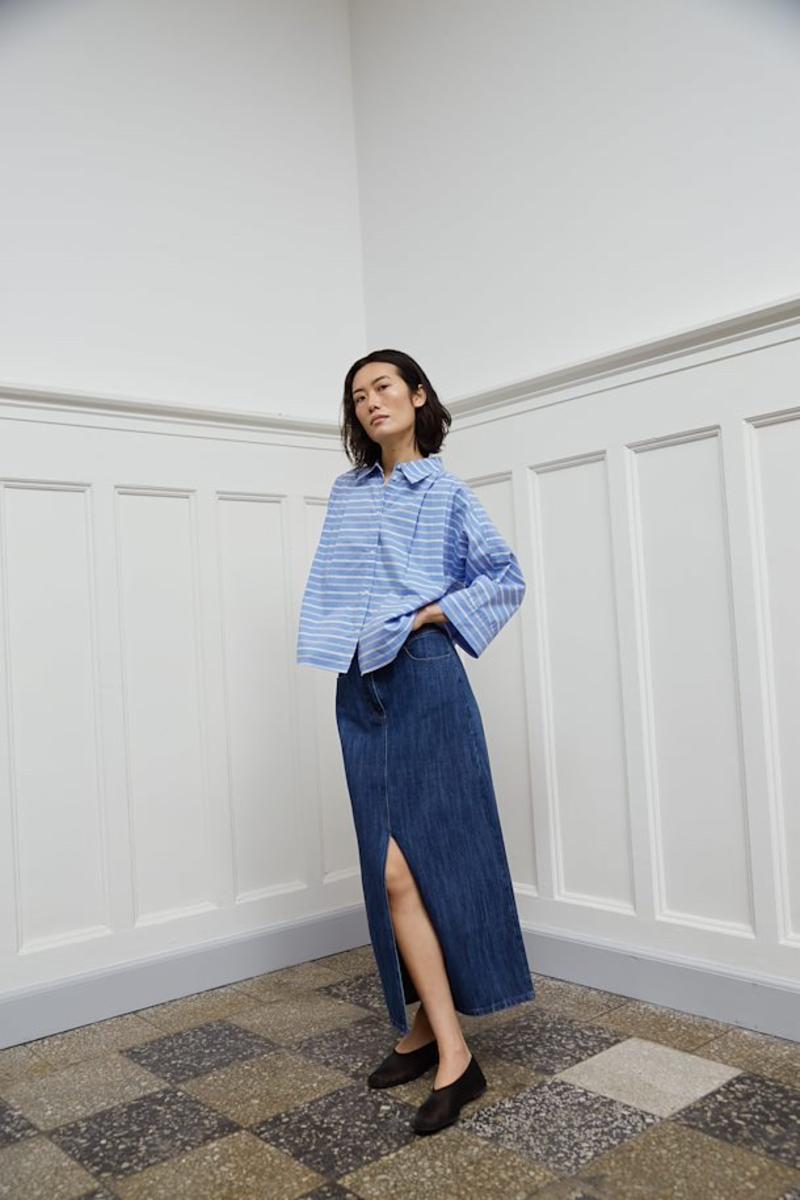 Stripete skjorte med klassisk krage og trekvart lange ermer. Skjorten har en avslappet passform og knappelukking som gir et moderne og friskt uttrykk. Modellen er 176 cm høy og har på seg størrelse M.