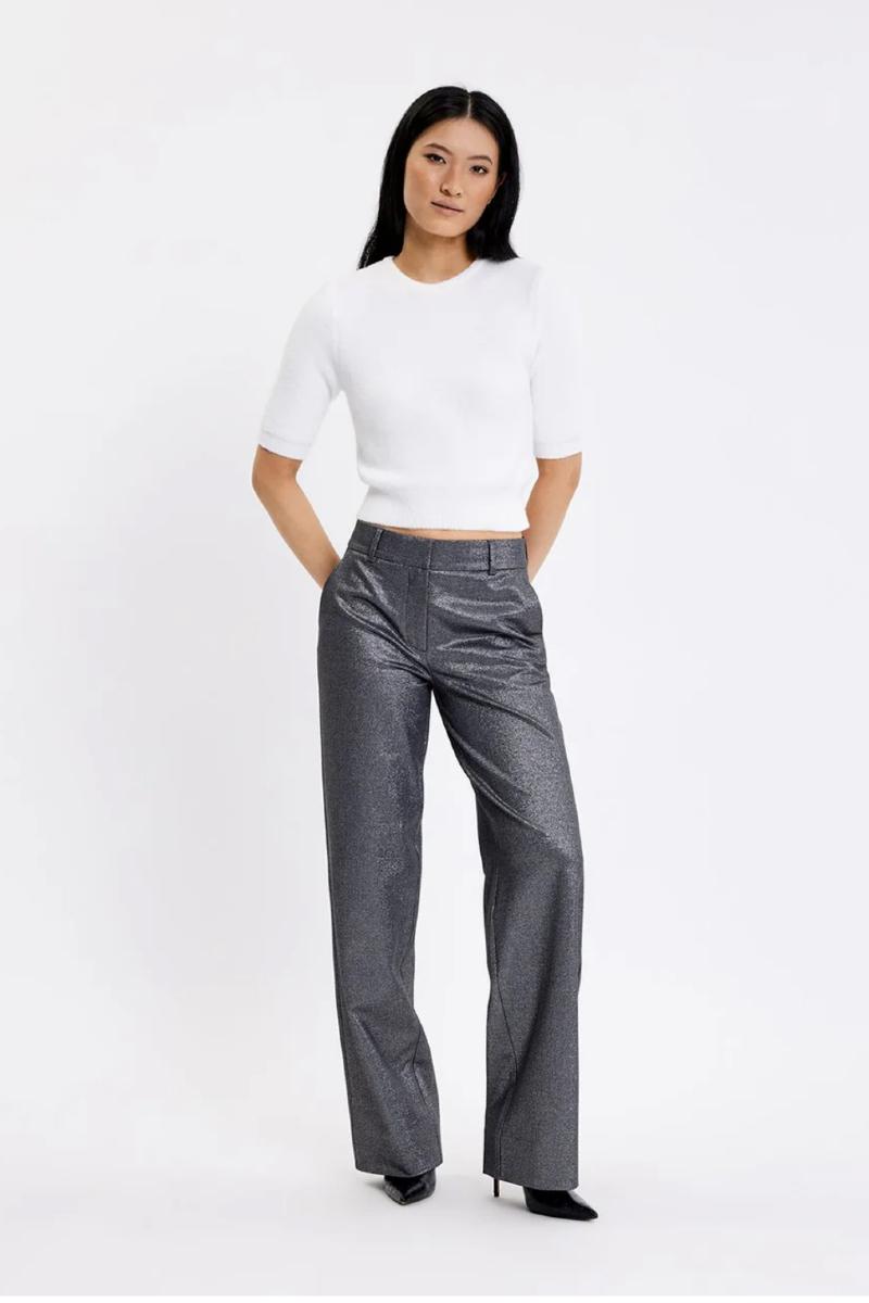 56% Polyester, 30% Viscose, 4% Elastane, 10% Lurex, Wash at 30 degree, Do not bleach, Do not tumble dry, Iron at low temperature, Dry clean use any solvent except Trichloroethylene,