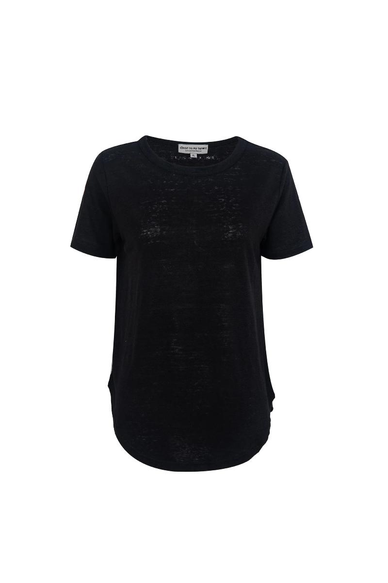 Leslie t-shirt har en løsere passform. Har rund hals, avrundet nede med god lengde. Myk lin som faller fint rundt kroppen. litt stor i størrelsen.