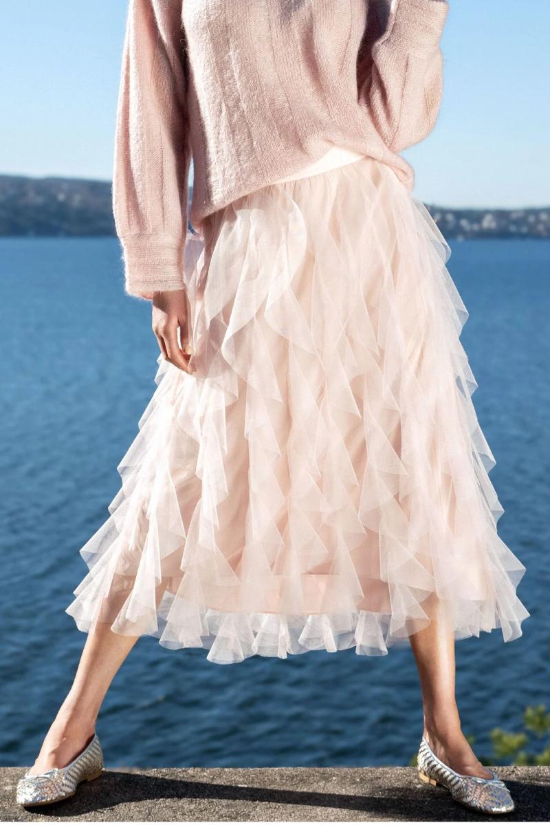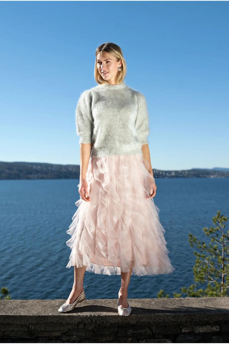 Valentina, midiskjørtet som redder enhver kleskrise! Myk tyll kvalitet med behagelig strikk i livet. Kombiner med strikk, t-shirt og sneakers til hverdags, pynt opp med en lekker topp og hæler til fest. Dette skjørtet har du glede av hele året!
