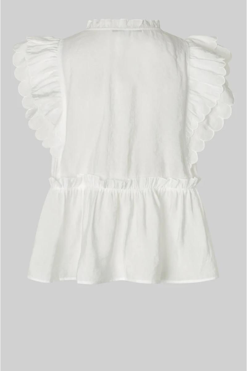 Second Female top with frills. The top is made in a soft modal blend. Featuring a V-neck and frill details at the neck, shoulders and waist. Extra tier at waist for added volume. Relaxed fit.