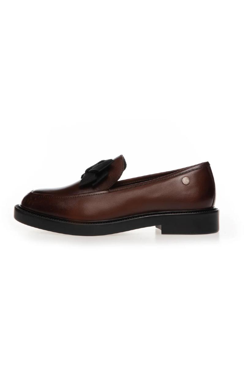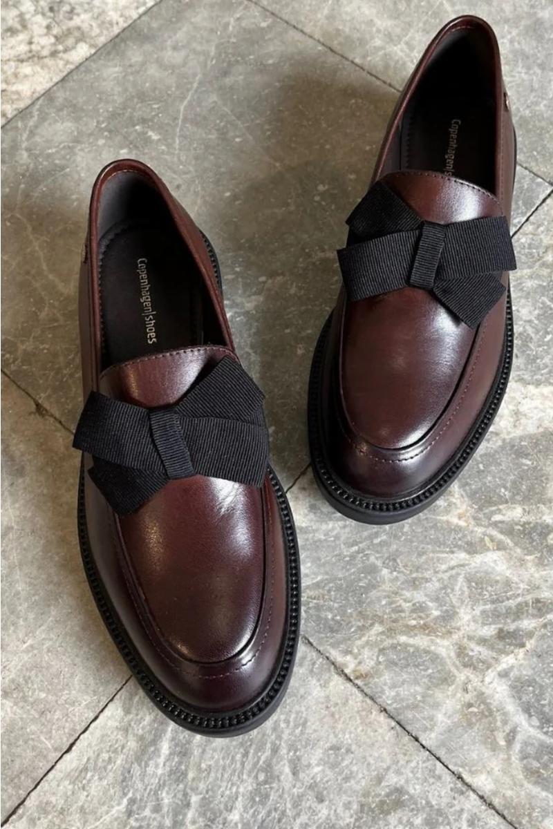 Loafer in brown leather with a delicate bow detail in textile, providing a feminine and modern expression. The model combines classic form with elegant details and is easy to style for both everyday and office wear. The lightweight TPR sole and our soft insole with 4-6 mm Copenhagenshoes foam ensure a comfortable experience all day long.