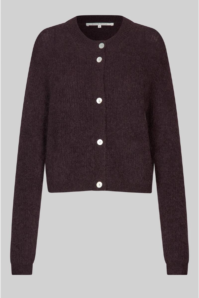 Andrea Knit Rib LS Cardigan Chocolate Plum