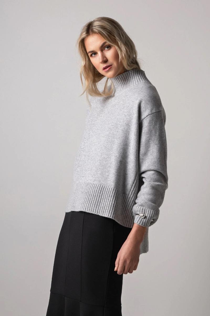 Alfie, chunky strikket i delikat 100% superfine merino ull. Lang erm, semihøy crewneck, fallende skulder og med fine ribb detaljer. En litt tyngre genser som føles eksklusiv.