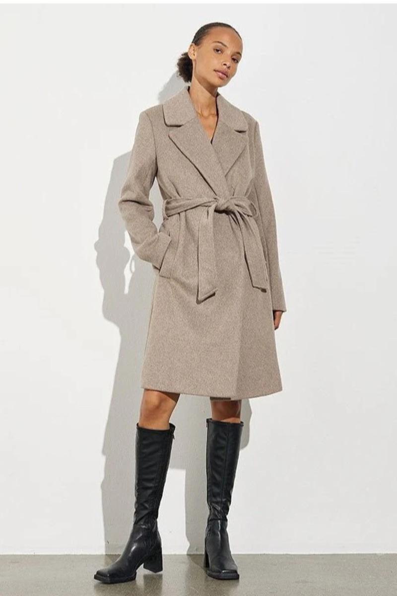 -Denne varianten er: Greige Melange - Materiale: 50% Ull, 45% Polyester, 5% blandede fibre