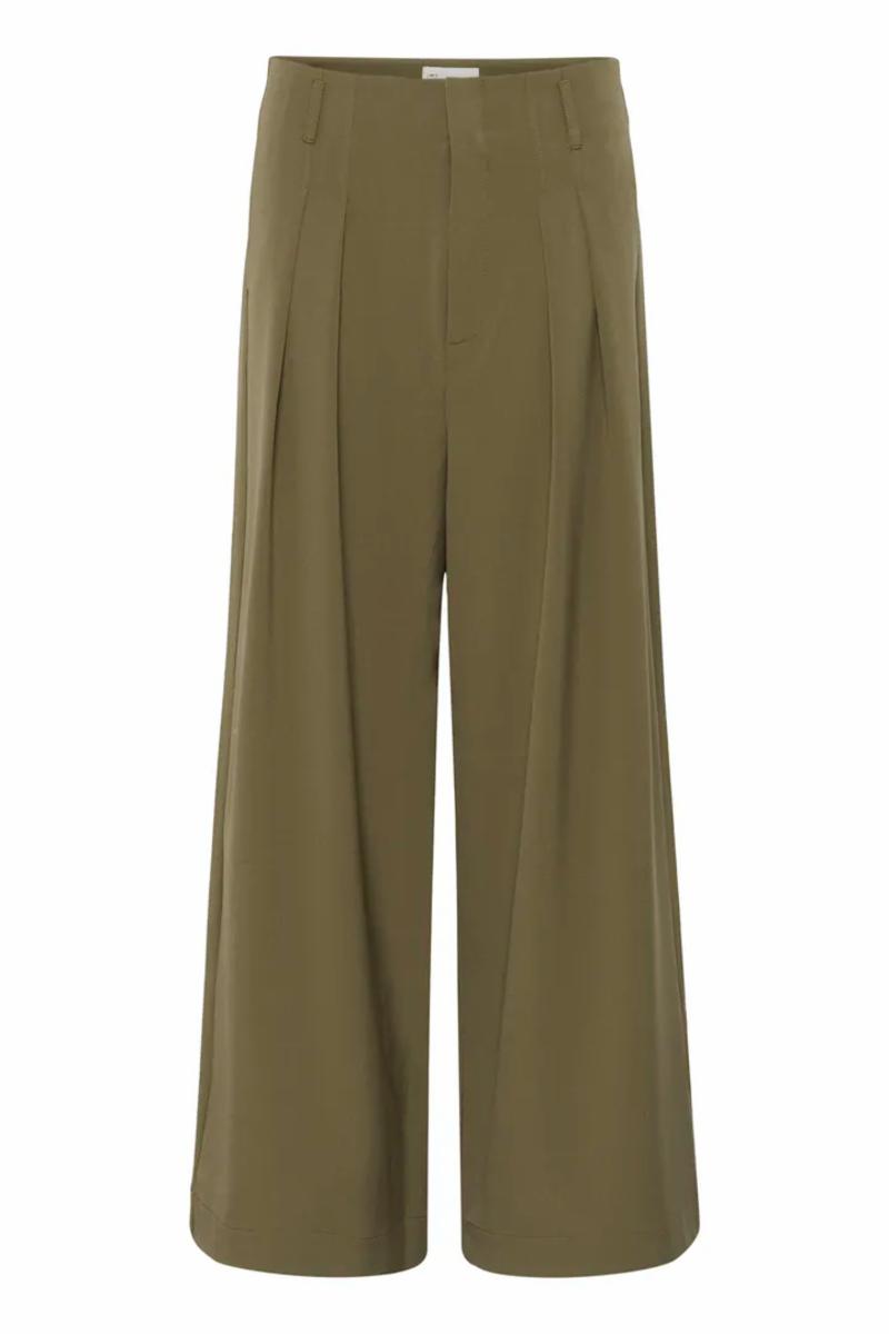 Vide damebukser gir en avslappet passform med plissert front og høy midje. Perfekt for både kontor og fritid, og sikrer komfort hele dagen.