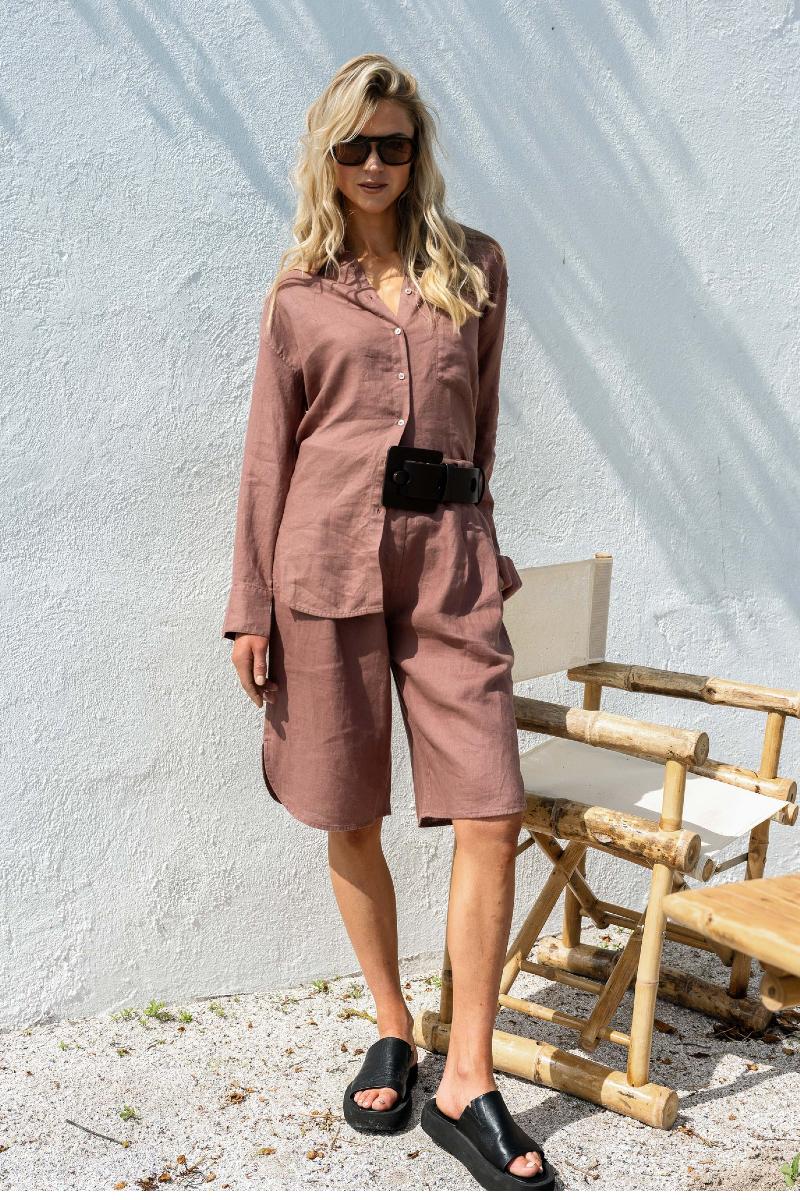Alle trenger en klassisk linskjorte med litt plass i. Lana er laget på smørmyk lin, har en fin brystlomme, fallende skulder og passer perfekt sammen med de andre underdelene i samme kvalitet..