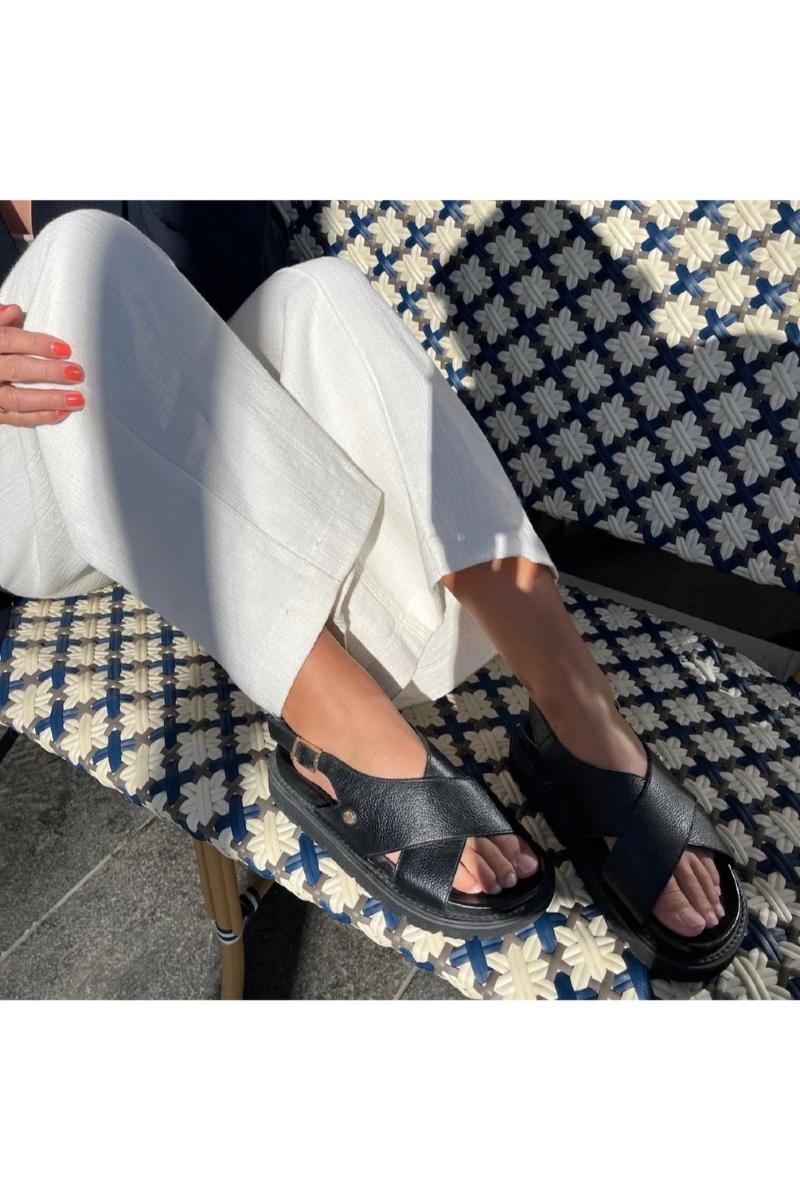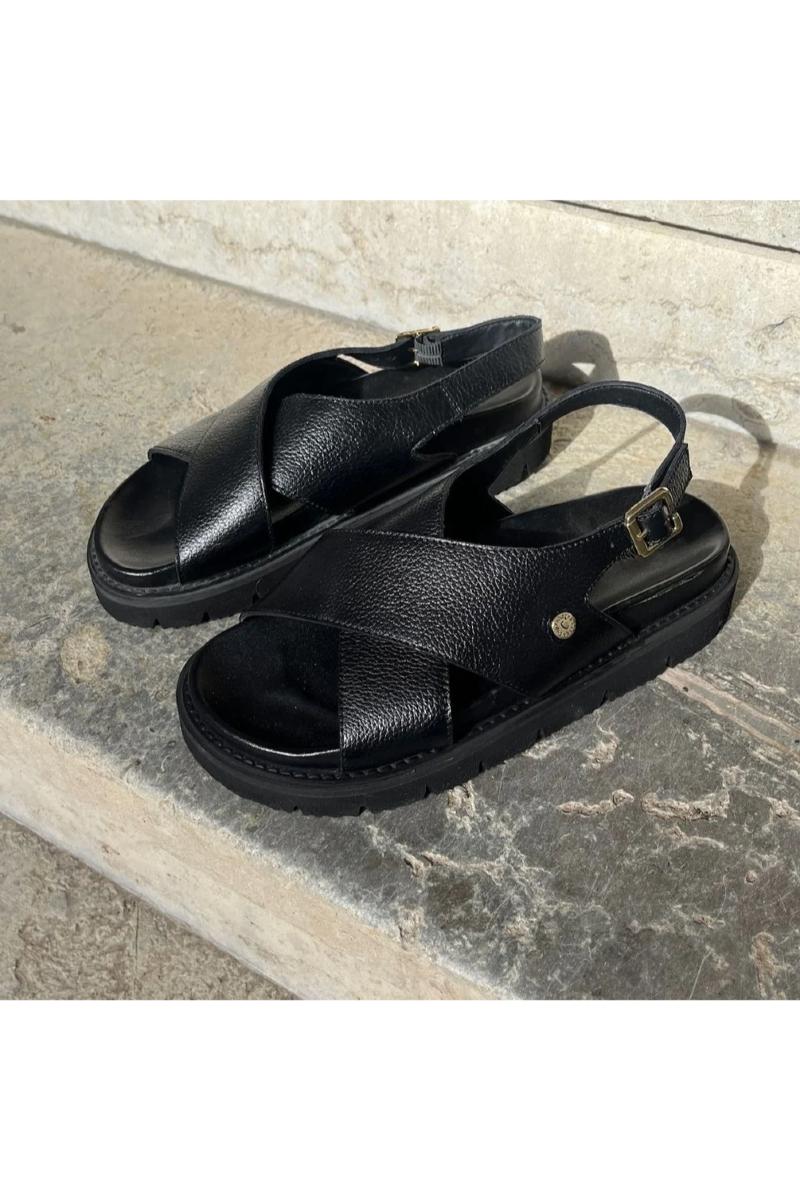Leather sandals with good comfort and a simple elegant look. The sandals have a small gilded buckle on the strap around the heel, and are easily adjustable. Lightweight rubber soles and a very good fit