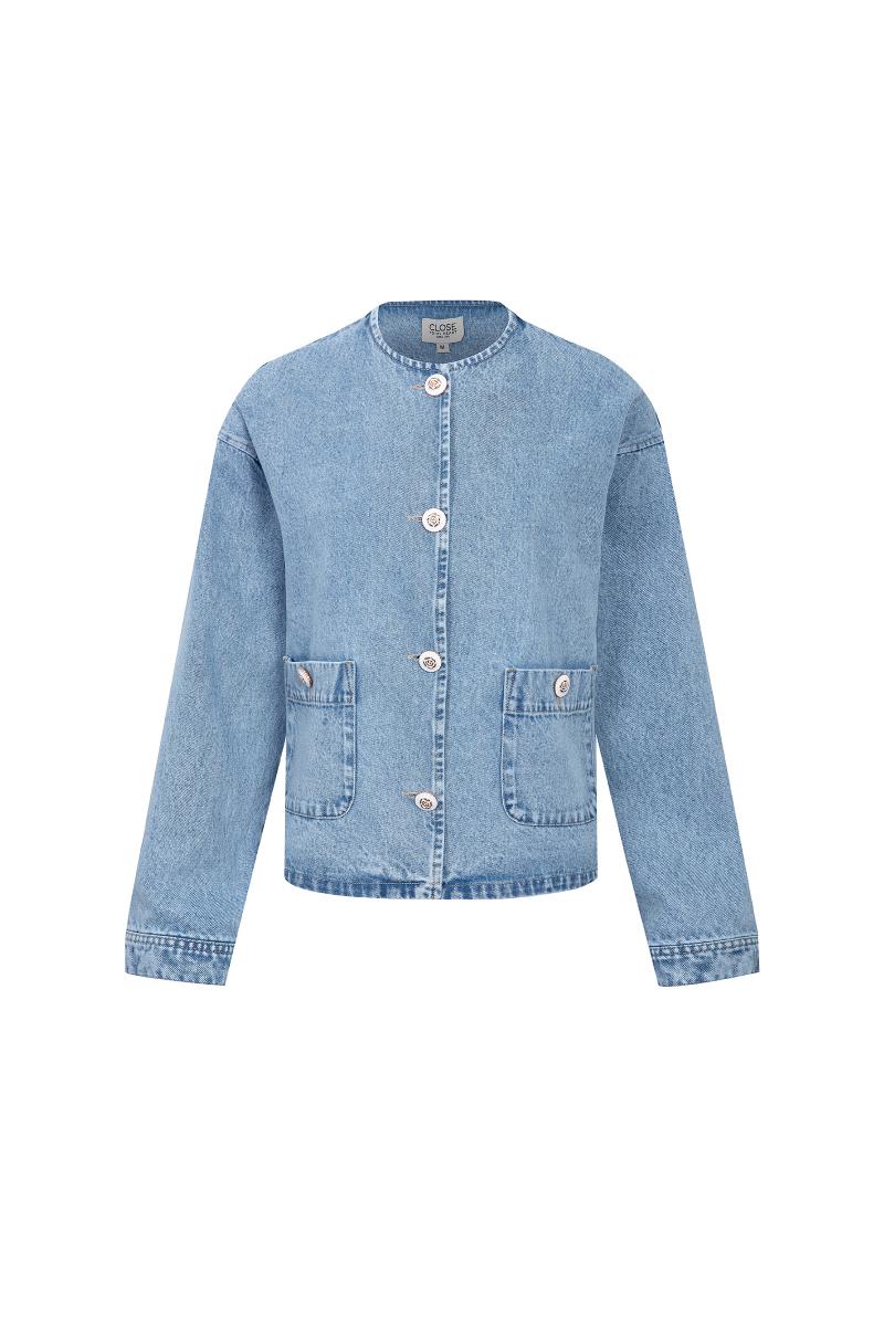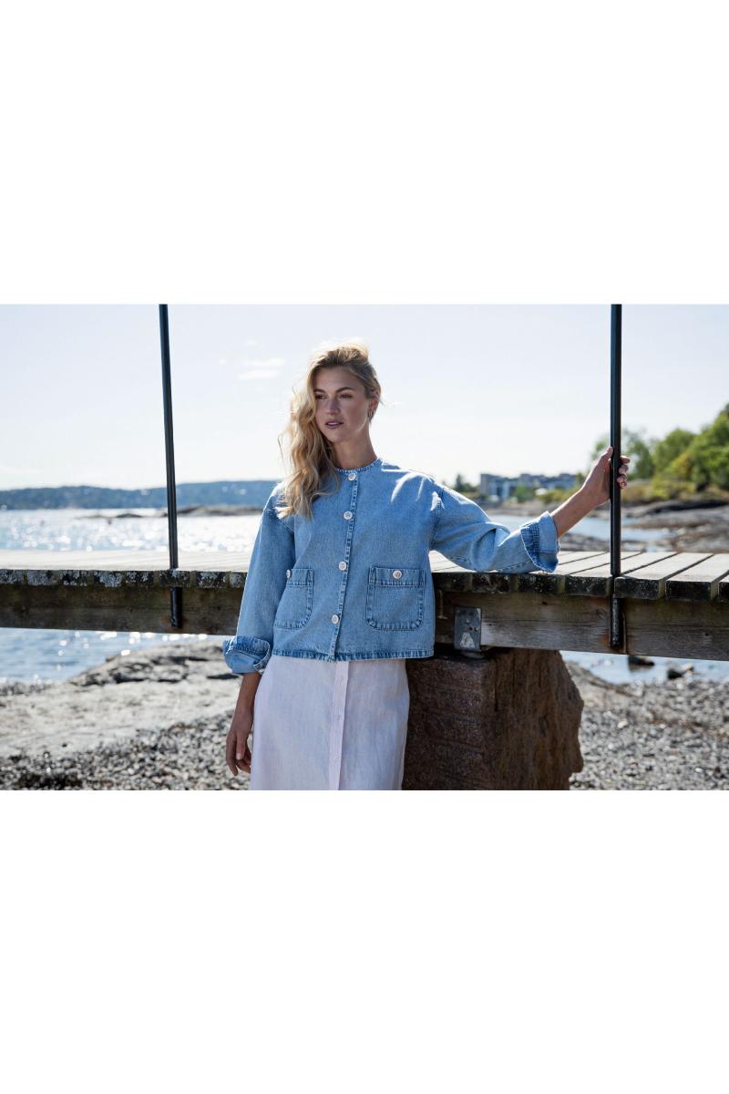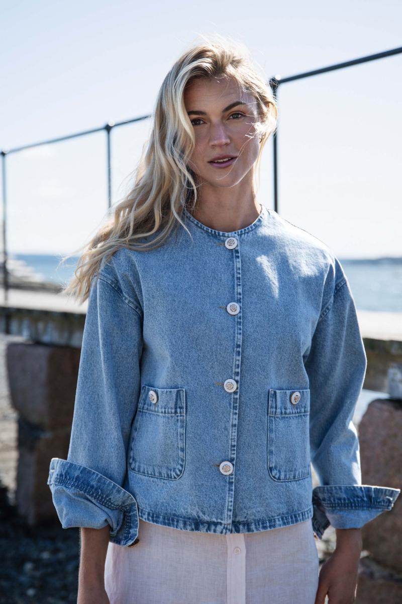 Boxy fit, rund hals, fallende skulder og med lekre knapper i hvitt og gull..