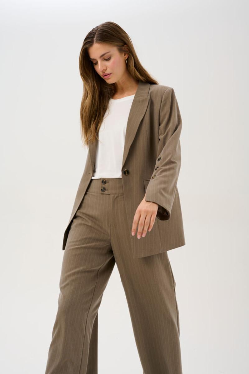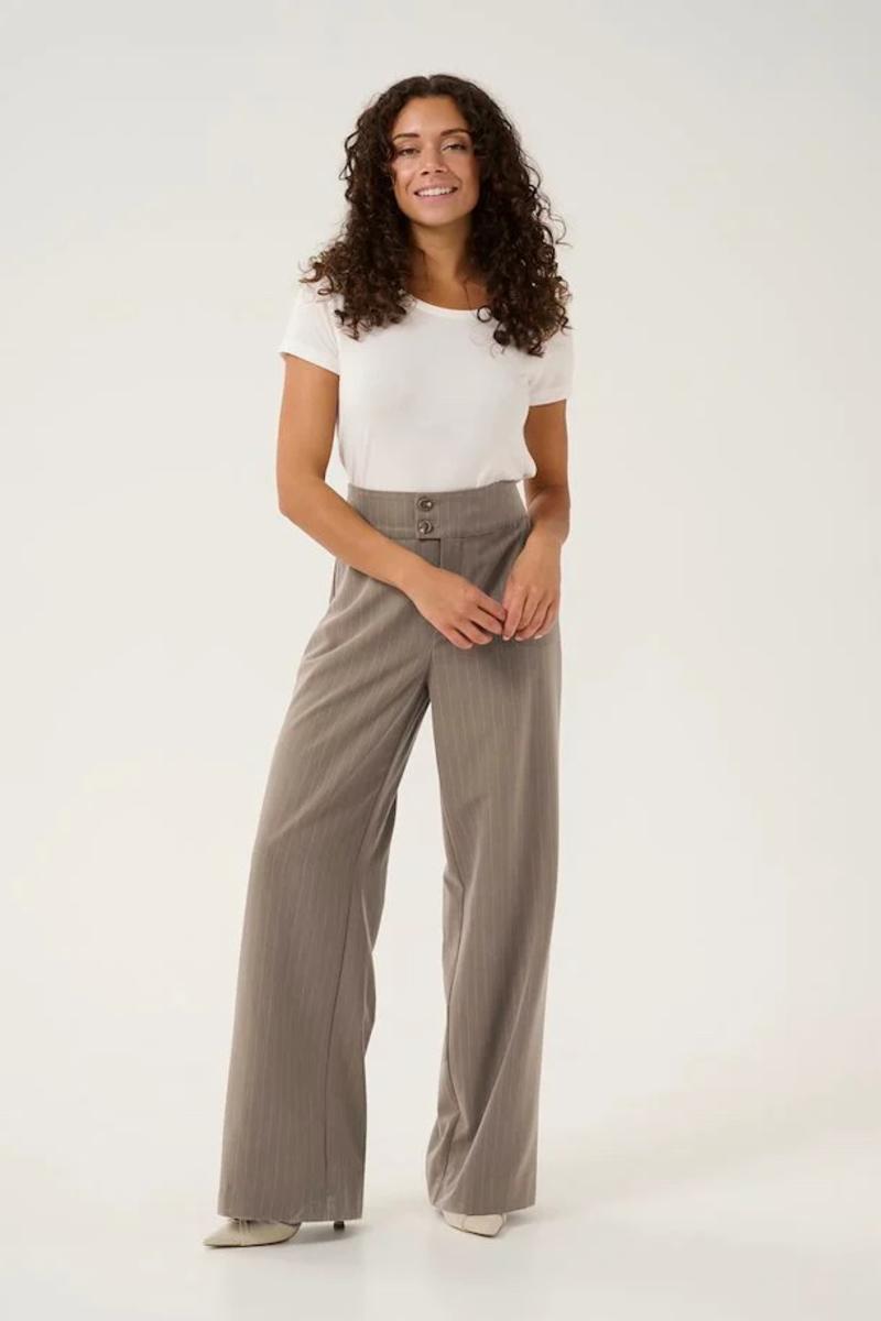 Disse buksene har en klassisk passform med høy midje og full lengde. Laget av et vevet stoffmiks, gir disse buksene en moderne og stilfull look i hverdagen. Stil dem med din yndlingsoverdel og nyt en tidløs stil.